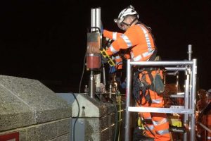 Geo-Structural ops coring holes in a bridge parapet as part of parapet extension works.